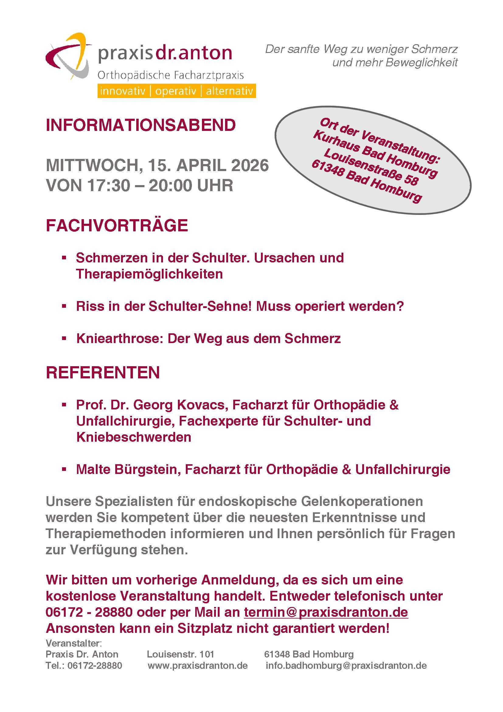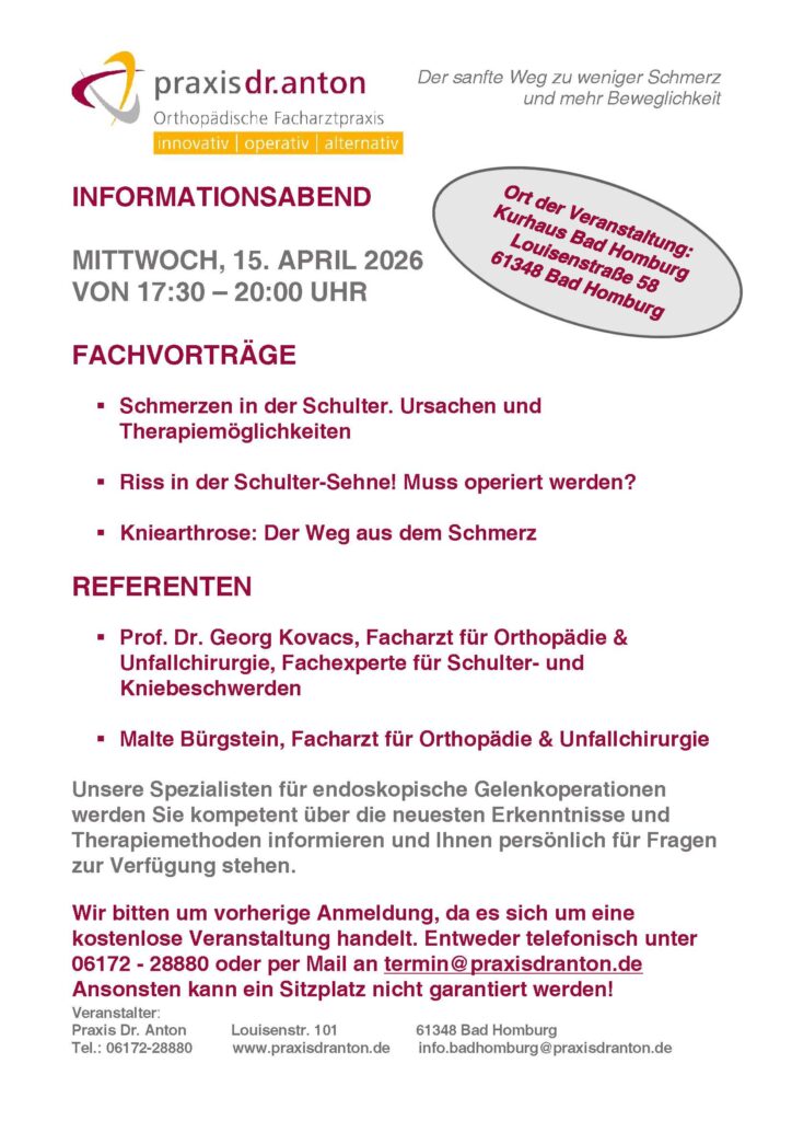 Informationsabend mit unserem Schulterexperten Prof. Dr. Kovacs